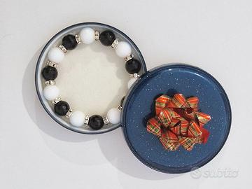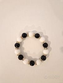 Bracciale Donna semplice ed elegante con elementi brillanti alternati al bianco e al nero. Nuovo.