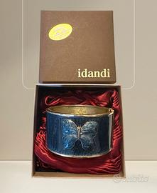 Vendo bracciale rigido a molla, in acciaio dorato smaltato blu scuro con farfalla.