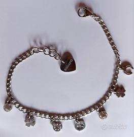 Bracciale con catena grumetta in acciaio. Lunghezza 18,5 cm circa, più catena di allungamento. Pendenti simbologia fortuna e punti luce in cristallo taglio rotondo. Presente scatola originale visibile in foto Se interessat@ non esitate a richiedere ulteriori foto