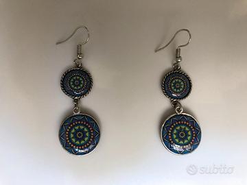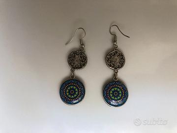 Bracciale e orecchini con motivo mandala Materiale: ottone, plastica Colore: blu, rosso, turchese Lunghezza bracciale: 20 cm (con catena)