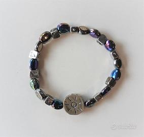 Bracciale elastico con perline sfaccettate e un ciondolo a forma di sole.