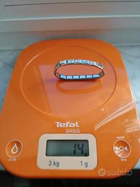 Bracciale elastico d'acciaio simil Nomination composable, con scritta STEFY color oro, diametro interno bracciale 5 cm, dimensioni ciascun tassello 1x0,7 cm, peso bracciale 14 gr. Usato ma in ottime condizioni, presenti piccole righe dovute all'uso ma praticamente invisibili quando indossato.