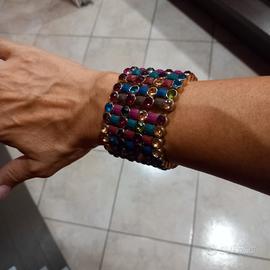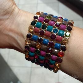 Bracciale elastico donna multicolore lavorato a mano acquistato all'estero.