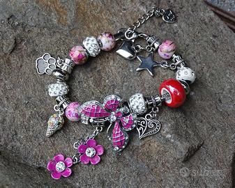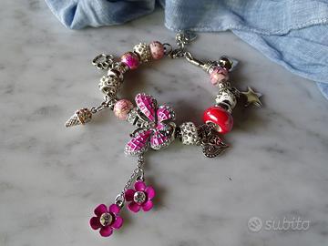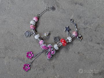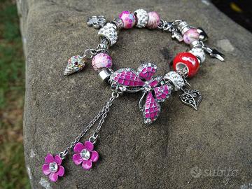 Bracciale allegro con catena maglia tipo snake, misura regolabile da 18 a 20 cm, chiusura a moschettone. Farfalla in lega metallica con smalto e strass e vari charms. Usato ma portabilissimo.
