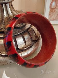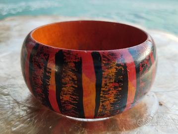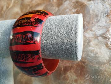 Bracciale rigido, molto probabilmente artigianato africano; realizzato il legno dipinto a mano.
