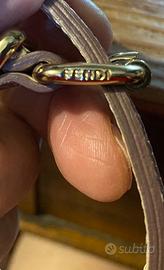 Bracviale in pelle effetto lucertola di Fendi, con anelli in metallo dorato a forma D per applicazione charmes, (vedi foto come esempio)