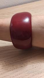 Bracciale Ferragamo vintage in resina color rosso/marrone/vinaccia (il colore è cangiante in base alle luci) forma irregolare come da immagini, purtroppo la misura non è ideale e preferisco lo abbia qualcuno che l'apprezza piuttosto che lasciarlo in un cassetto