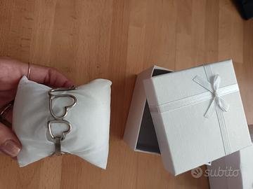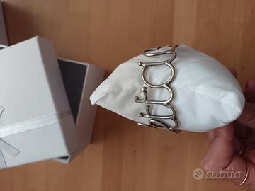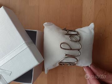 Bracciale in argento 925 a filo personalizzato con nome "Diletta" (con finale di cuori forati), Atelier L'argento Firenze, 100% Made in Italy