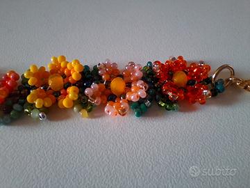 Bracciale floreale artigianale vetro e cristalli