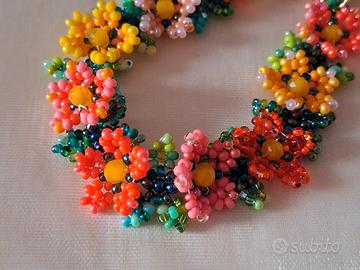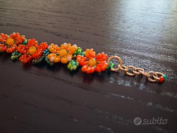 Bracciale realizzato interamente a mano con ago e filo in tessitura di bellissime perline in vetro di qualità Europea Preciosa con fiori e foglie nei toni e sfumature del giallo, arancione e verde e cristallini sfaccettati 🌺 Gioiello resistente con filo di eccellente qualità e metallo anallergico nickel free 🌺 Lunghezza 16 cm, regolabile fino a 18 cm Nuovo 🌷⚘️🌺🌻🌼 La lavorazione richiede diverse ore di impegno e dedizione 💜 Perfetto anche come idea regalo, handmade with love 💖 Disponibile anche in altri colori, visita gli annunci sul mio profilo ⚘️🌺 Prezzo 18 € 🌺 💖🌷⚘️🌺🌻🌼