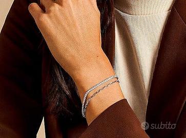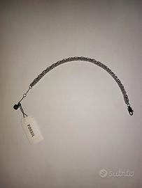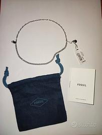 Braccialetto Fossil donna originale, in ottone con chiusura a moschettone a doppia catena. Colore argento, finitura lucida. Bracciale da polso.