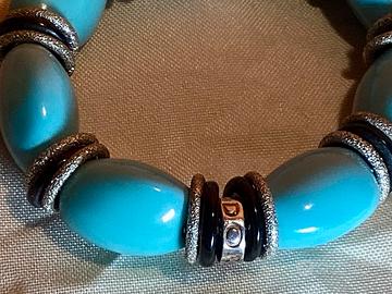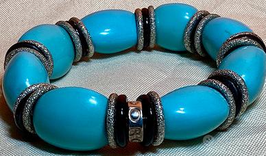 Bracciale GIODORO elastico Con Perle Ovali Turchese E Anelli Color Argento Neri