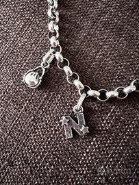 Bracciale Giovanni Raspini con lettera N e altri 3 ciondoli. Lunghezza 20 cm