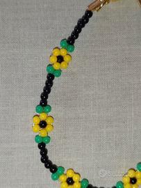 Bracciale fatto di perline con motivo girasole - Fatto a mano - Personalizzabile dimensione e colori
