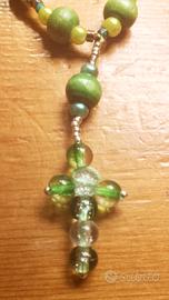 - Ciondolo a forma di croce con perline trasparenti e verdi.