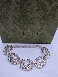 Bellissimo bracciale firmato Gucci in argento 925 con le G inconiche del brand grandi lungo tutto il bracciale.