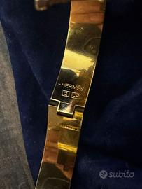 Bracciale rigido Hermès iconico con chiusura a forma di “H”.bianco con dettagli dorati , metallo placcato oro e smalto Chiusura a scatto con lettera H Condizioni: ottime come nuovo. Elegante e raffinato, perfetto per ogni occasione