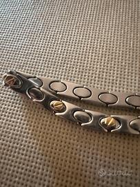 Vendo bracciale in acciaio in perfette condizioni con decorazioni dorate. Lunghezza 21 cm