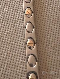 Bracciale in acciaio in perfette condizioni con decorazioni dorate. Lunghezza 21 cm