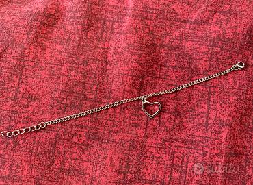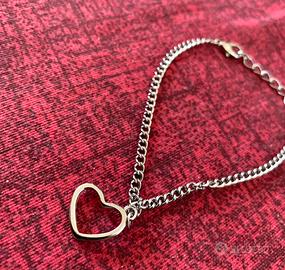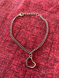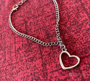 Braccialetto color argento in acciaio con ciondolo con cuore, produzione artigianale.