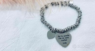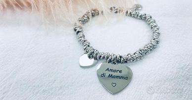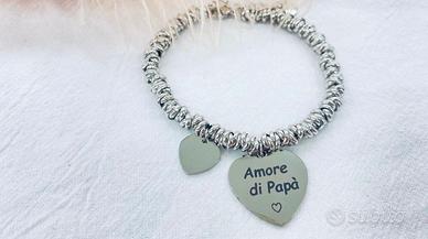 bracciale in acciaio con cuore e dedica