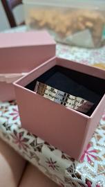 Sul bracciale è scritto "Le belle cose capitano a chi crede, cose ancora più belle capitano a chi è paziente. Ma le cose migliori vanno a chi non si arrende". Pendente finale con dettaglio luminoso