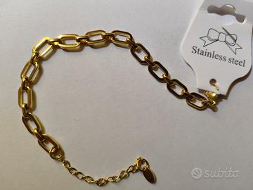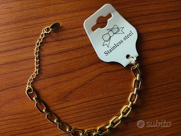 Bracciale in acciaio color oro 21 cm, senza custodia rigida, mai indossato