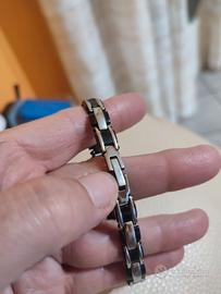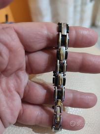 bracciale da polso uomo in acciaio inossidabile bicolore, con maglie nere e argentate tenuto bene, strass mancante. si accettano offerte