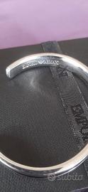 Buongiorno, vendo bracciale in argento 925 Emporio Armani vintage, usato ma tenuto molto bene. Pesa gr. 34, diametro larghezza interno polso cm. 5,5, diametro altezza interna polso cm. 4,3, e apertura inserimento polso cm. 3, grazie per l'attenzione.