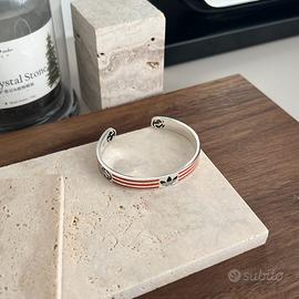 [Collaborazione limitata] Bracciale in metallo con logo GUCCI x Adidas inciso, argento 925. Stile unisex per coppie. L'arancione e l'argento sono una combinazione di colori sorprendente, versatile e sofisticata. Il design del Trifoglio e del logo Adidas è perfetto per le coppie. Nuovo di zecca con scatola, mai usato. Spedito il giorno successivo.