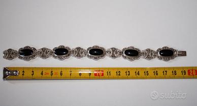 Stupendo bracciale Vintage in argento 925 con pietre naturali di Onice nera. Bracciale artigianale fatto a mano degli anni passati ma ancora attuale per essere indossato. Lunghezza 19 cm. Per ulteriori info contattare. Spedizione o consegna a mano.