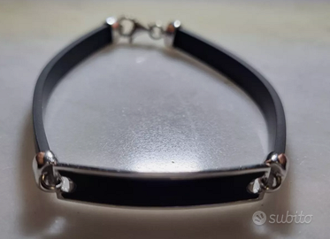 Bracciale in caucciu e argento RH da uomo Lungo 19 cm Scatola originale