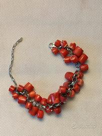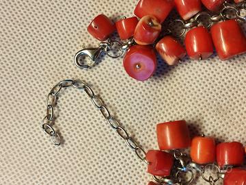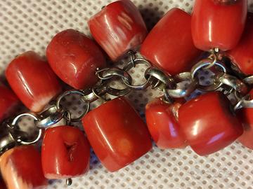 Vendo bellissimo bracciale in corallo rosso a barilotto, con elementi del diametro da 9 a 11mm, e chiusura a moschettone in argento 925. Lunghezza regolabile da 20 a 27cm.