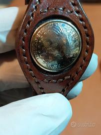bracciale in cuoio rigido con inserito un dollaro americano, NUOVO realizzato e cucito a mano chiusura con fibbia in metallo prodotto interamente artigianale ottimo anche come idea regalo.. per informazioni contattatemi pure..