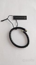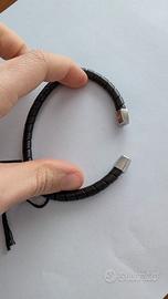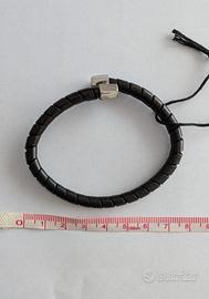 Bracciale semirigido in cuoio colore nero/marrone molto scuro.