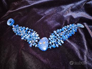 Bellissimo e importante bracciale multifilo in lapislazzuli, di un colore blu intenso. Lunghezza estesa 23.5 cm. I miei gioielli vengono consegnati in bellissimi sacchetti di diversi tessuti e colori.