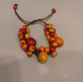 Bracciale realizzato a mano con perline in legno Regolabile con nodo a scorrimento