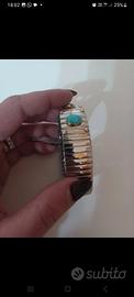 bracciale simile nomination con oro 750 come da placca con 5 turchesi tutta la parte del bracciale e in acciaio con inserti in oro e pietre vere