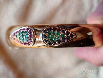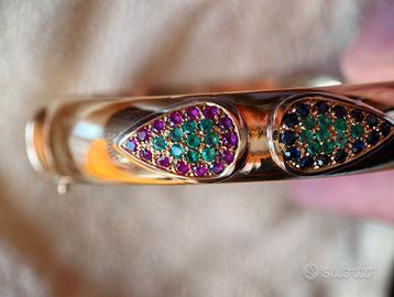 Bracciale in oro 750 del peso di 34 grammi con pietre preziose vere. Gioiello di famiglia, disponibile a farlo visionare da un vostro esperto. Rubini,smeraldi e zaffiri. In condizioni perfette. Sarebbe meglio lo scambio a mano