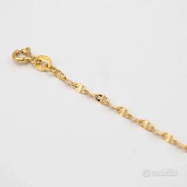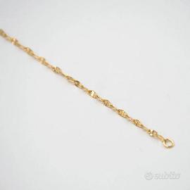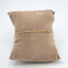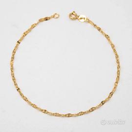 Bracciale in oro giallo 18 kt grammi 0,8 lungo cm. 20. La lavorazione è lucida. Prodotto made in Italy munito di marchio di fabbrica come da legge e completo di confezione e certificato di qualità rilasciato dalla Gioielleria.