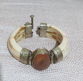 Bracciale vintage anni '80, etnico realizzato in osso.