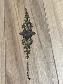 Elegante bracciale in ottone con dettagli floreali smaltati.