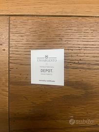 Bracciale in pelle, marca unoargento. Collaborazione con Depot the male tools. Circonferenza di 20 centimetri. Nuovo, mai usato