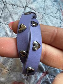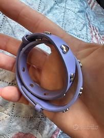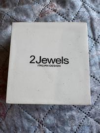 Il bracciale mostrato nell'immagine fa parte della collezione di 2Jewels, un marchio italiano di gioielli. Il logo "2Jewels Italian Design" è chiaramente visibile sia sulla scatola che sul cartellino informativo all'interno [Immagine Utente]. I bracciali 2Jewels sono spesso realizzati con materiali come l'acciaio inossidabile e inserti in pelle. Il modello specifico appare come un bracciale a doppio giro in pelle di colore viola/lilla, decorato con borchie o elementi metallici circolari. Ecco alcune informazioni rilevanti sul brand e prodotti simili: Brand: 2Jewels produce collezioni sia per uomo che per donna, con un focus su un design moderno e versatile. Materiali: Spesso utilizzano acciaio 316L accoppiato a silicone o pelle. Disponibilità: I gioielli di questo marchio sono comunemente venduti presso gioiellerie multimarca e store online specializzati. Sebbene l'estetica possa ricordare quella di marchi di alta moda come Valentino o Christian Louboutin per l'uso di pelle colorata e borchie, il packaging conferma che si tratta di un pezzo originale 2Jewels