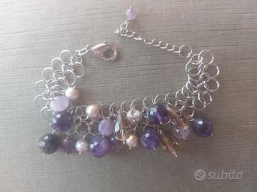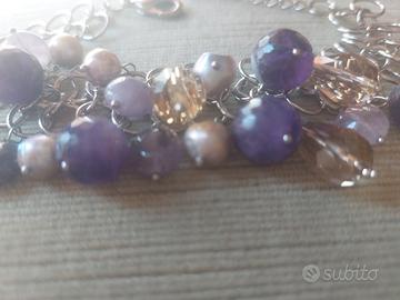 bracciale in pietre dure viola e lilla perle grigie