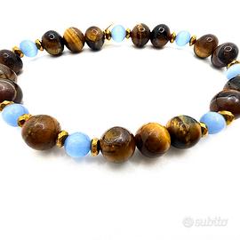 Bracciale in pietra con elastico Pietre ochio di tigre da 8mm Pietre agata azzurra 6mm Insertinin ematite colo oro