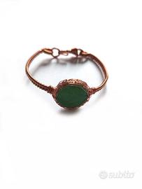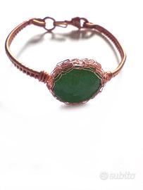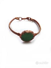 bracciale lavorato a mano con filo di rame, pietra centrale ovale agata verde