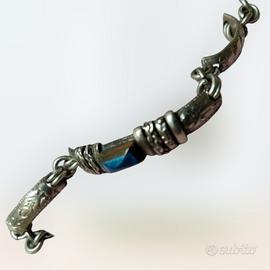 Bracciale INCA argento 925 vintage con inserto blu