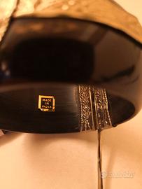 Vendo Bracciale indiano originale made in India, rigido in legno di cocco con finiture in argento, anni '80, usato pochissimo, in perfette condizioni, si può aprire con meccanismo a chiodo, diametro interno cm. 6.2, diametro esterno cm. 8, altezza cm 3.5. Se telefonate a Graziano 340-4110406 dalle 10 alle 19. Si spedisce solo dopo eventuale bonifico più spese di spedizione, oppure, la merce va ritirata personalmente e pagata in contanti, a Vago di Lavagno (VR) o, previo accordo nelle immediate vicinanze, max 10 Km.