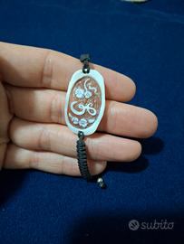 Bracciale con ciondolo iniziale in cammeo e cordino regolabile